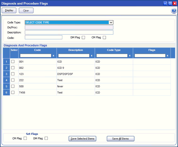 5. To apply the selected flag (s) to an individual or a small group of diagnoses or procedures, click on the Set Flags for Selected Items button.