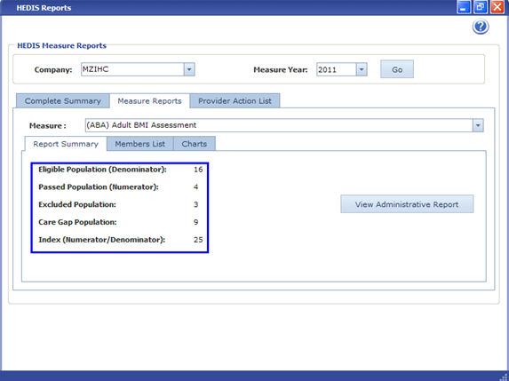 Click on ‘View Administrative Report’ Icon to View the HEDIS Administrative Report for Selected Measure.