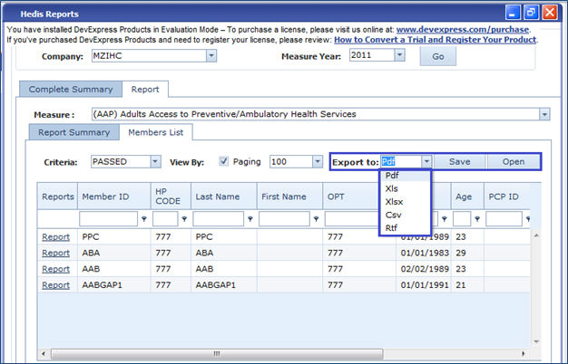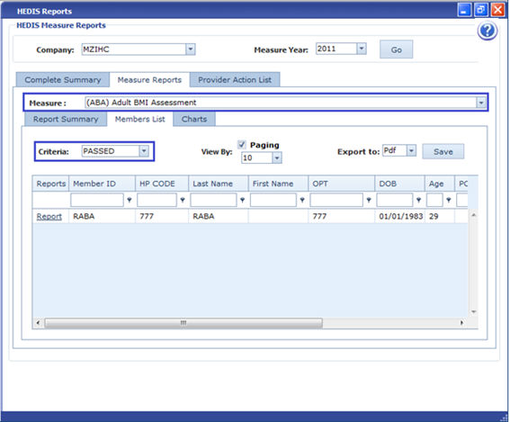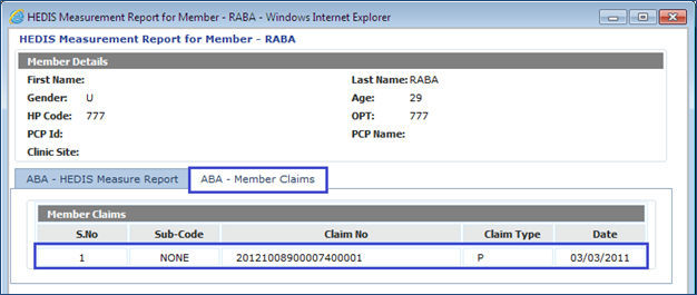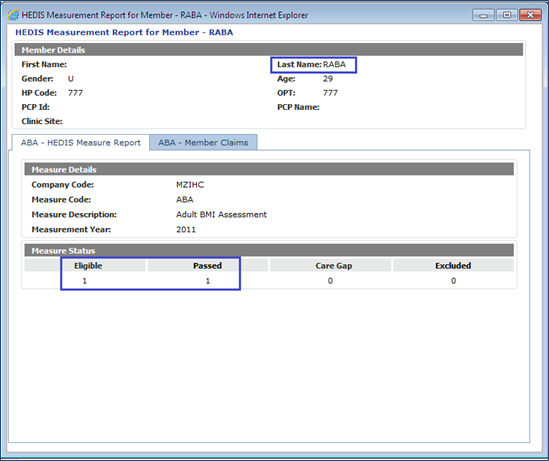 Click on Report Hyperlink to View the HEDIS Measure Report for the Selected Member.