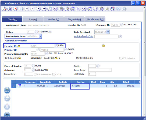 Click on Member Claims, we can see the claims that match the given criteria in the report.