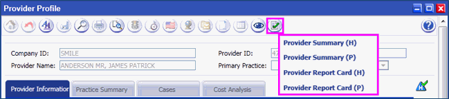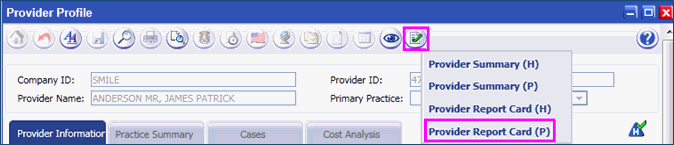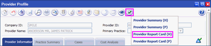 Provider Report Card screen is displayed with Criteria and Summary Information.