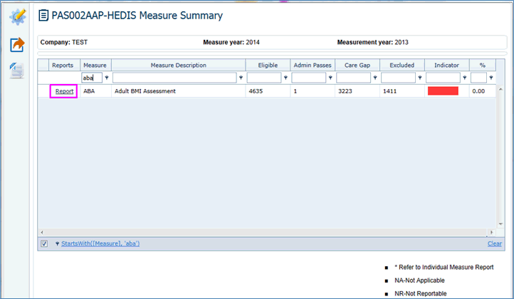 The selected measure “ABA” chart is displayed.