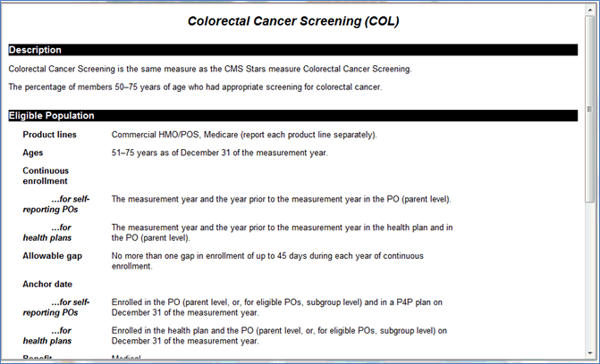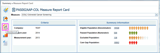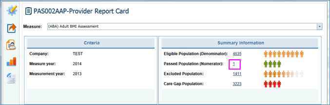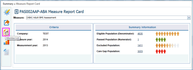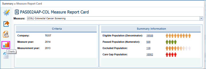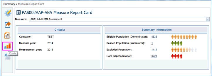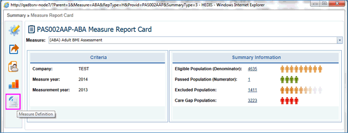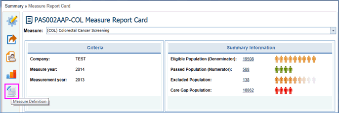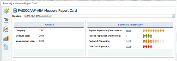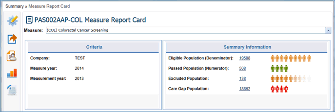 In the Measure Report Card, the Criteria and Measure Summary Information is displayed with color indications.