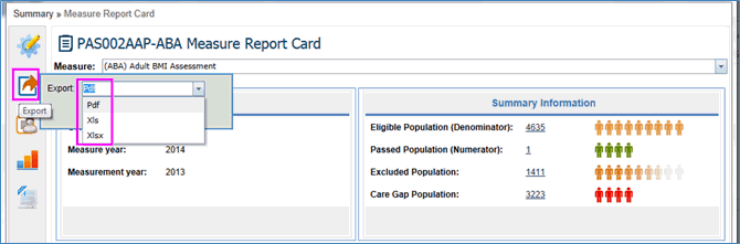 Selected Measure Report Card is displayed.