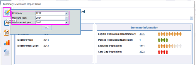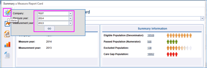 Enter the criteria of Company, Measure Year and Measurement Year and click on “Go” button.