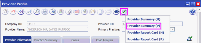 Click on Provider Summary (P).